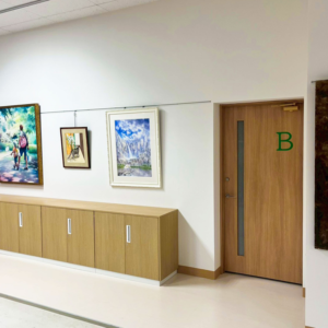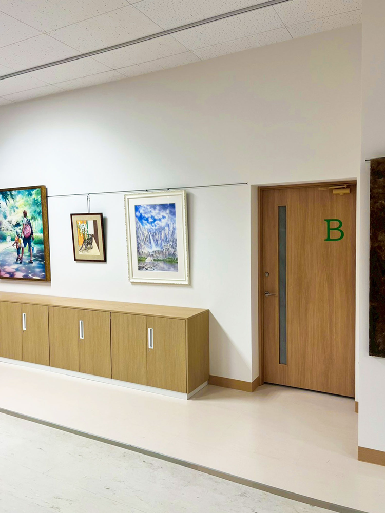 教室前には、作品や成果物を展示できるギャラリースペースを施工し、訪れる方の目を引くとともに、学びの魅力が伝わる空間を演出しています。また、教室の一部屋を大きくし、生徒の方々がのびのびと講座に取り組めるよう、開放感と使いやすさを重視したレイアウトに。学ぶ楽しさがより深まる、快適で温かみのある空間に仕上げました。